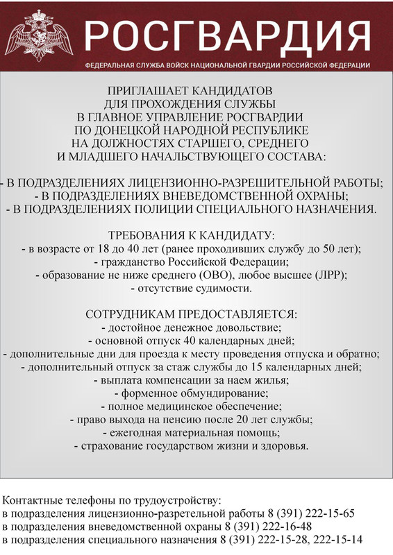 Приглашение для прохождения службы в главное управление по Донецкой народной республике